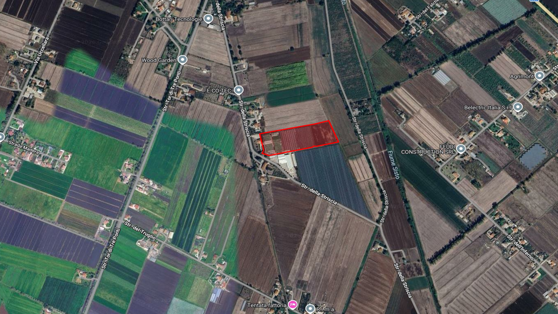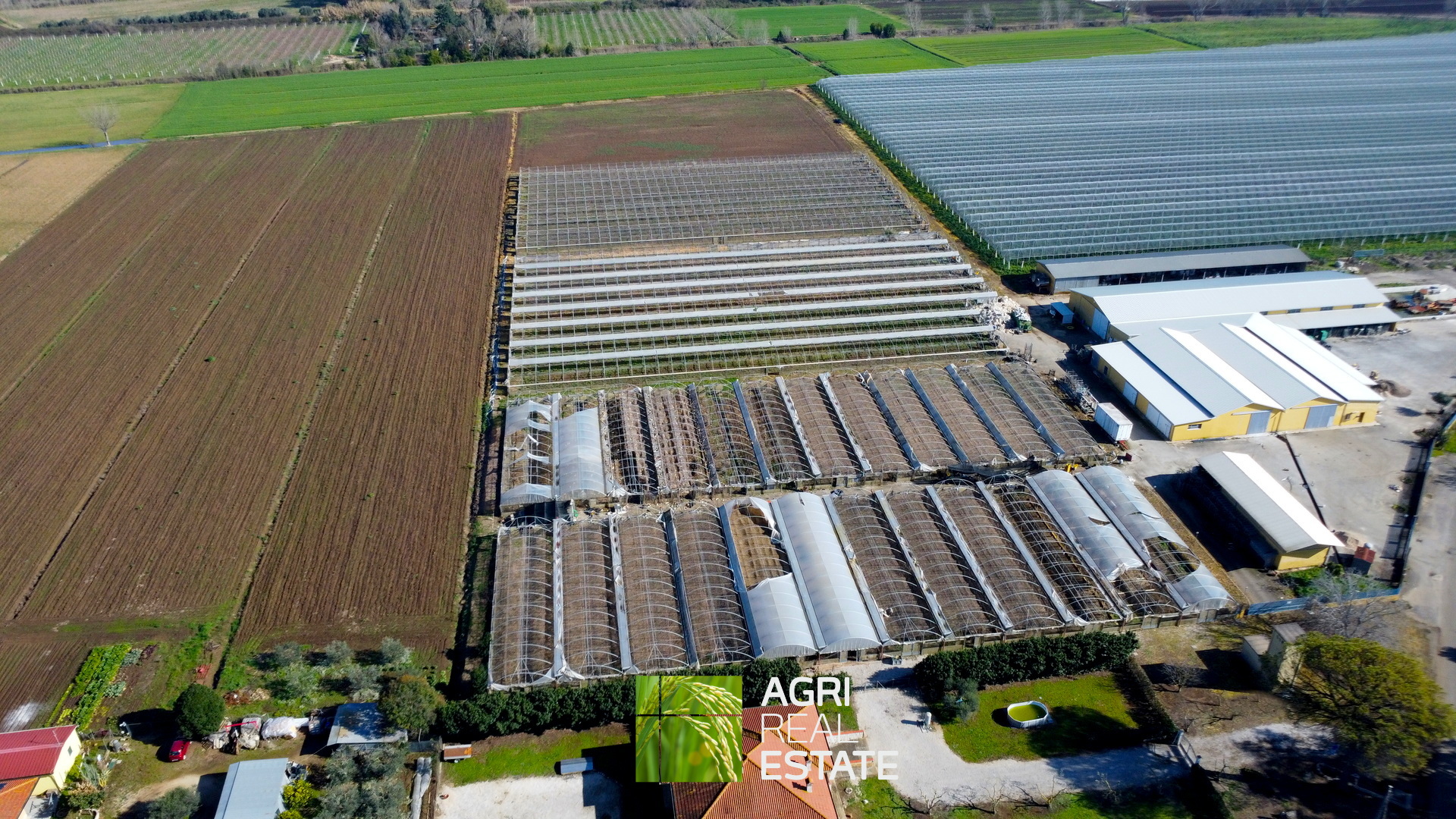 La proprietà è composta da 4 corpi di fabbrica per una superficie coperta complessiva di circa 19.379 mq, affiancati da una area di pertinenza esterna di circa 5.790 mq, idonea alle operazioni di carico, scarico e movimentazione. Completa il complesso una ulteriore superficie agricola a destinazione seminativa di circa 9.000 mq, utile per coltivazioni a pieno campo o come area di supporto all’attività serricola.