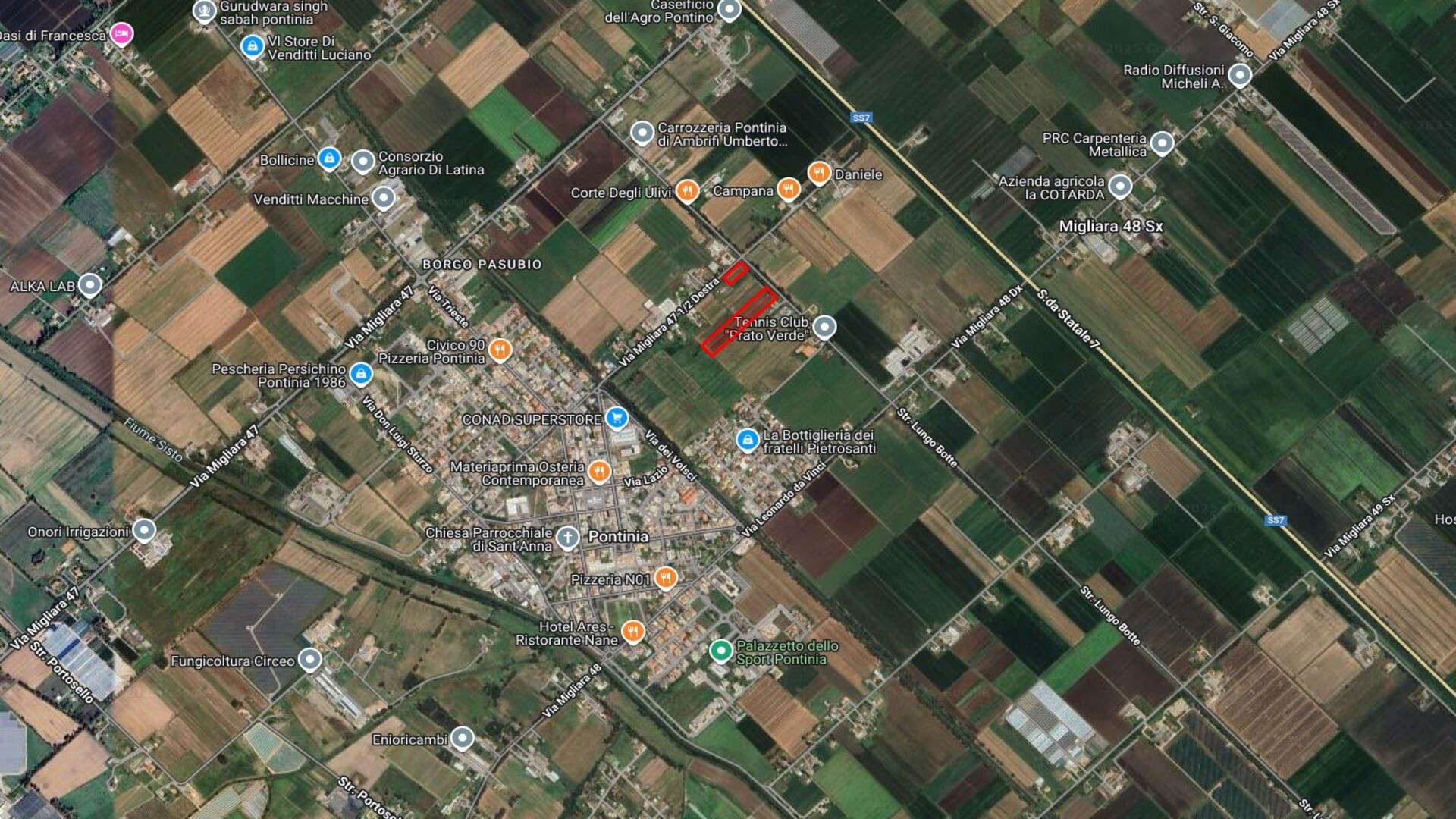 La zona è ben collegata, a soli 2 km dalla SS7 Appia, garantendo collegamenti rapidi con Pontinia, Sezze e le principali direttrici dell’Agro Pontino.