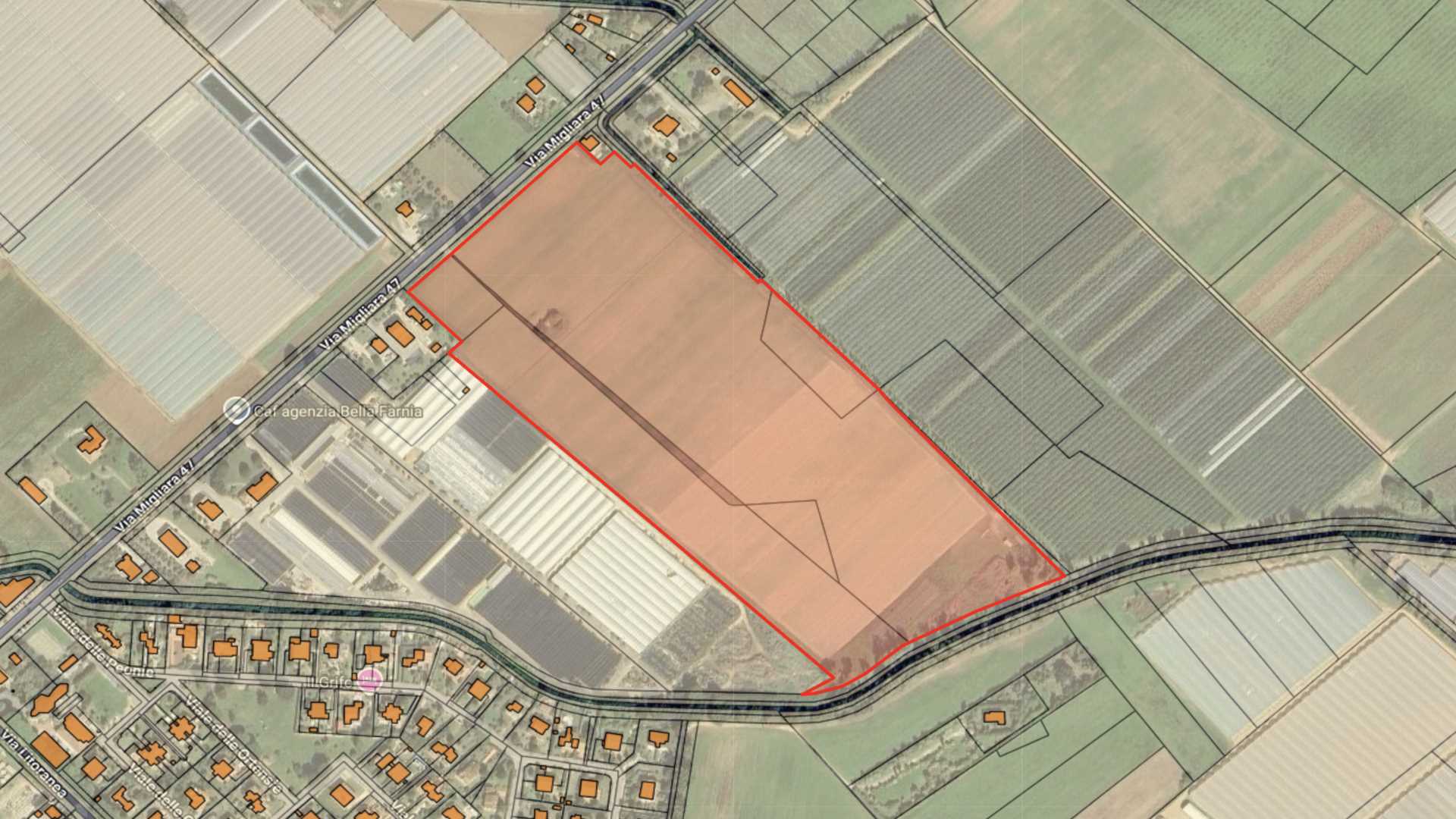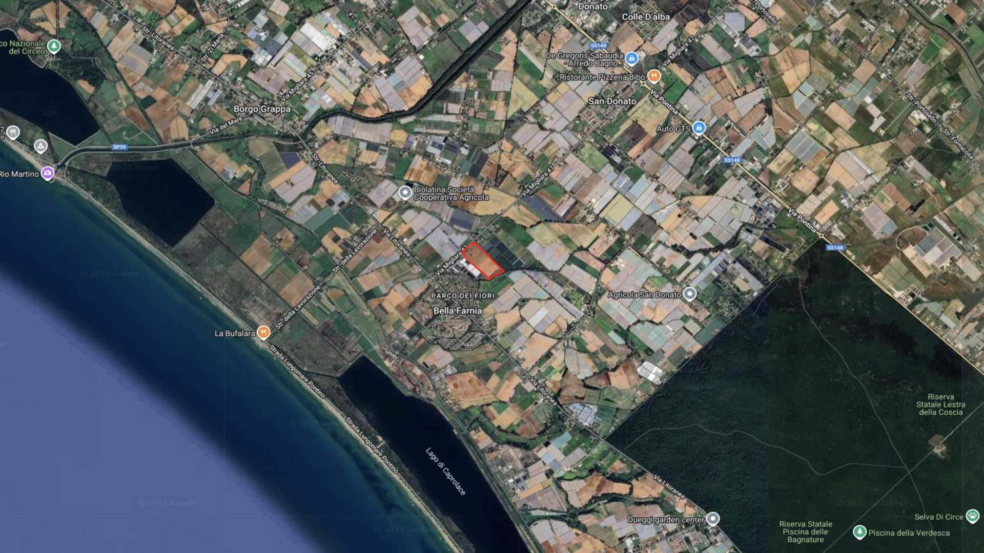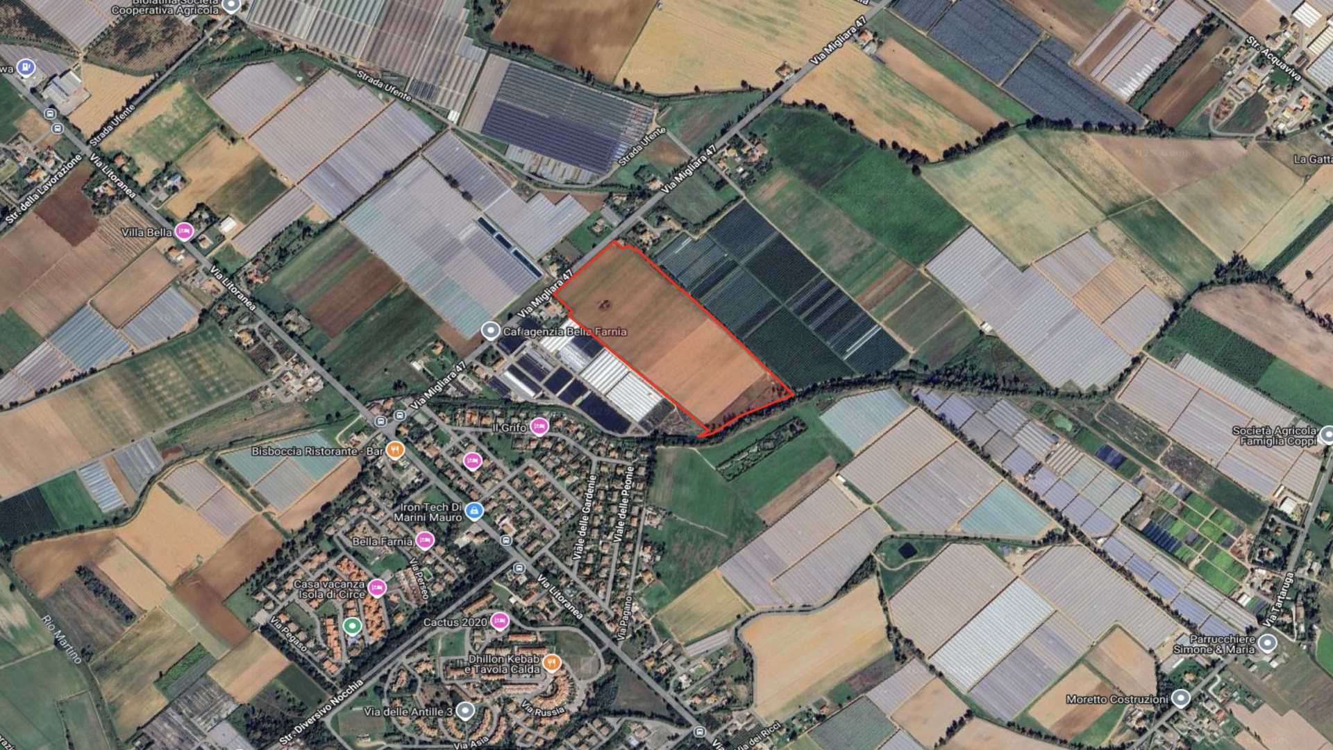 Terreno agricolo fertile e completamente pianeggiante di circa 10 ettari, situato a Sabaudia lungo Via Migliara 47, in posizione fronte strada e in una delle aree a più alta vocazione agricola del territorio pontino.